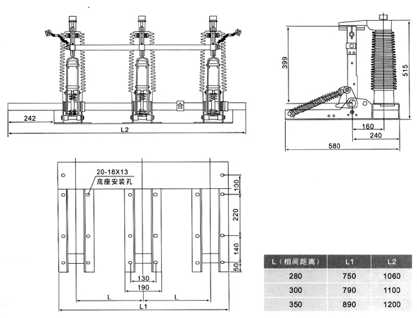 | 相間中心距 | mm | 280; 300; 350 | ||