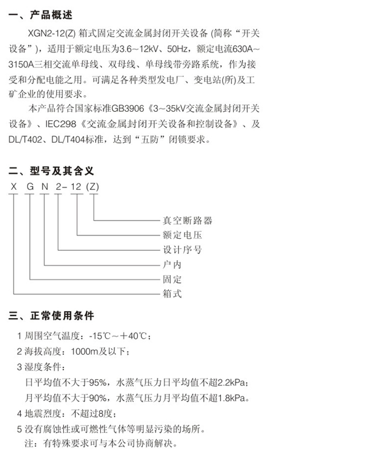 XGN2-12(Z)箱型固定交流金屬封閉開關(guān)設(shè)備