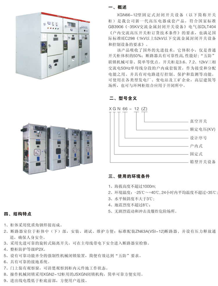 XGN66-12箱型固定式交流金屬封閉開關(guān)設(shè)備