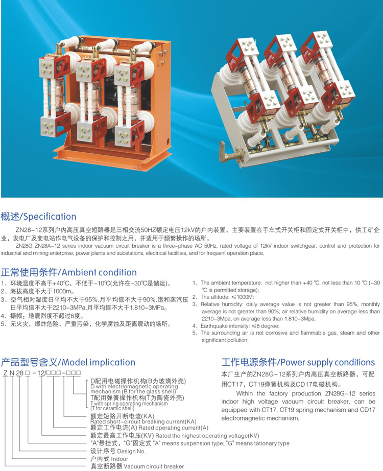 ZN28G/ZN28A-12側(cè)裝式真空斷路器