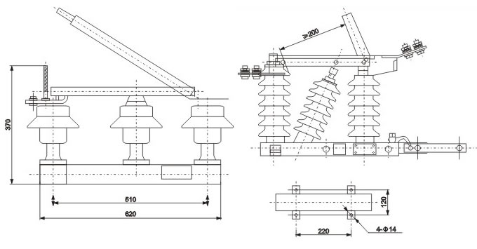 GW1型戶外高壓隔離刀閘GW1-12/630A(以下簡稱隔離開關(guān))適用于裝在戶外12KV線路上,供線路在有電壓,無負(fù)載時分合電之用。
